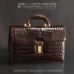 クロコダイル ハンドバッグ シャイニング加工 センター取り ブラウン メンズ 斜めがけ ななめ掛け 斜め掛け 牛革 トートバッグ 2way 日本製 レディース 本革 レザートート