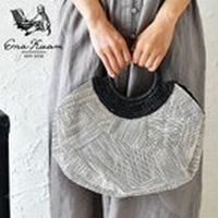 【Ena Kuam エナクアム】 から 結晶パッチオールバッグのご紹介です。 細やかなストライプ地をパッチワークにした表情が魅力のバッグ。 持ち手部分にペーパー素材を使用し、 まあるい持ち手にざっくりと編んだ切り替えが可愛いです。 開口部分はマグネットボタンで留めることができ、 内側にはオープンポケットが付いています。 クラシカルな中にナチュラルな雰囲気を合わせ持つ 大人の女性にぴったりのバッグですよ♪ 横幅:35cm 縦幅:25cm マチ:13cm 持ち手内側直径:10cm 内ポケ:1 外ポケ:0 重量:350g color:ホワイト×ブラック made:ネパール 素材:本体:コットン 内側:コットン 持ち手:ペーパー モデル158cm