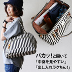 アネロ anello ストライプ柄 ボストンバッグ 口金入り コットンキャンバス A4 大きめ 鞄 トートバッグ