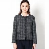 【実寸(cm)】12(M):着丈:50cmB:93cm袖丈:56cm裄丈:75cm肩幅:38cm/13(L):着丈:52cmB:96cm袖丈:57cm裄丈:76cm肩幅:39cm 【素材】表地:ポリエステル81 アクリル19% 裏地:ポリエステル100% 【メーカー品番】20200104048002 【コメント】ラメ糸のきらめきが高級感漂うツイードジャケット。首周りはノーカラーにすることで、ゴージャスになり過ぎないようなデザインにしました。ボトムはシンプルめなものを合わせて、ジャケットが引き立つようなコーディネートがオススメです。