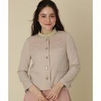 【実寸(cm)】36(S):着丈:48cmB:92cm袖丈:55cm肩幅:35cm/38(M):着丈:49cmB:95cm袖丈:56cm肩幅:36cm/40(L):着丈:50cmB:98cm袖丈:56cm肩幅:36cm/42(LL):着丈:51cmB:101cm袖丈:57cm肩幅:37cm 【備考】重量:36(S):約250g 【素材】表地:本体 ポリエステル100% レース部分 コットン62 ナイロン28 レーヨン9 再生繊維(セルロース)1% 裏地:ポリエステル100% 【原産国】中国製 【メーカー品番】20190150846008 【コメント】デコルテに切り替えたレースが顔回りを華やかに演出するジャケットです。スカラップの切り替えやクリア釦のフェミニンなデザインを、ミニマムな着丈で上品に仕上げています。いつものコーデにサラリと羽織ればきちんと感のある大人のフェミニンコーデに。オフィスシーンで
