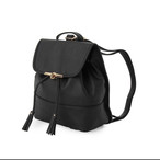 合皮素材2色と合皮×ストライプ生地2色展開のリュック。トレンド感のあるタッセル付きがポイントです。小ぶりながらマチがあるので見た目以上の収納力が嬉しい。背面のファスナーが本体直結で物の出し入れがし易く使い勝手◎ スタイリングのアクセントにオススメです。 内側ポケット×2