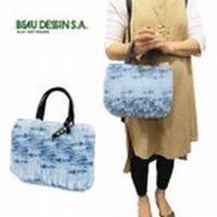 -BEAU DESSIN S.A.- 世界中を巡って魅力的な革を魅力的な革を厳選し、日本のアトリエで裁断、縫製など細かい所まで熟練した職人が手作業でおこなっています。 さまざまな表情を持つ革のよさを最大限に引き出し、熟練された手仕事で仕上がるバッグは大量生産には真似のできないこだわりと誇りがあります。 夏らしいプリントナイロン生地をプリーツ加工した、他にはないデザインのハンドバッグ。 ハンドルはネイビーカラーに染め上げた牛革を使用しています。 長財布やスマホ、ハンカチ、ポーチなどが収まり、普段のお出かけにピッタリのサイズです。 ・スナップ開閉式 ・内側にオープンポケット サイズ:幅30×高さ23×マチ1cm 素材 :ナイロン、牛革 カラー:ブルー×ネイビー ★日本製