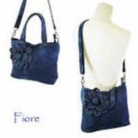 fiore ジーンズ生地 デニム ラインストーン フラワー モチーフ 2WAY ショルダーバッグ ハンドバッグ ダークブルー レディースバッグ トートバッグ