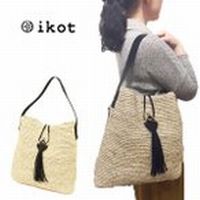 イコット ikot ラフィア 本革 牛革 タッセル フリンジ レザー カゴ ワン ショルダーバッグ トートバッグ ナチュラル IK219010