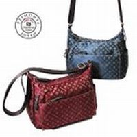 ブランドロゴを織り込んだナイロン生地に撥水コーティングをした、収納力のある斜め掛けショルダーバッグです。 前面のフラップを開けるとファスナーポケットが二つあり、荷物を小分けしやすくなっています。 背面やサイドにも多数のポケットを装備。 軽量で、年齢を問わず使いやすいバッグです。 ・ファスナー開閉式 ・前面にファスナーポケット(フラップ下にファスナーポケット2つ) ・背面にファスナーポケット2つ ・両サイドにオープンポケット ・カブセ下にファスナーポケット2つ ・内側にオープンポケット×2、ファスナーポケット サイズ:幅26×高さ17×マチ9cm 重量 :約350グラム 素材 :ナイロン・合成皮革・ポリエステル カラー:チョコ×ワイン(裏地レッド)、チョコ(裏地パープル)、ネイビー(裏地ブルーグレー)、ワイン(裏地ワイン)